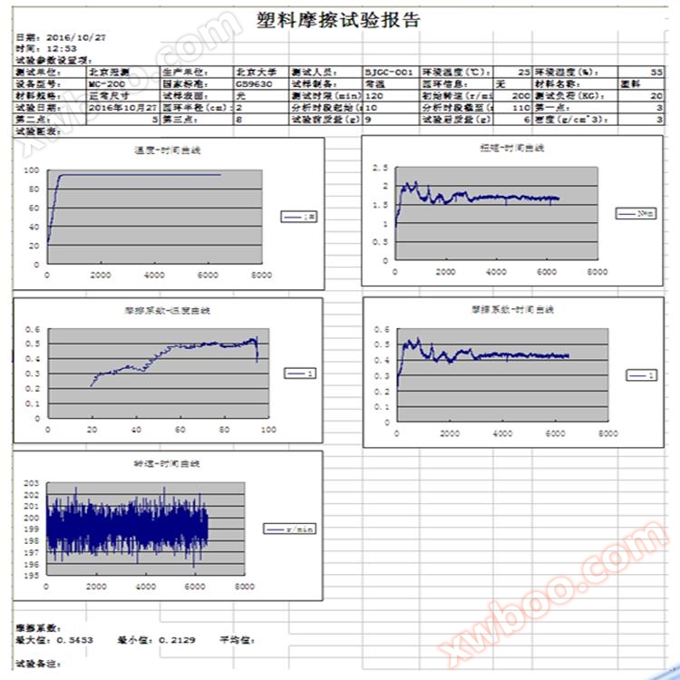 Thứ hai, tính năng chức năng: 1, kích thước mẫu: 30mm × 7mm × 6mm 2, tốc độ quay: 0-200 vòng/phút (có thể điều chỉnh) 3, tải: 196N ± 0,1% (có thể tăng lên 392N) 4, kích thước vòng ma sát: ¢40 × 10mm, chamfering 0,5 × 45 °, độ lệch đồng tâm của bề mặt vòng ngoài và vòng trong nhỏ hơn 0,01? 5, vật liệu vòng ma sát: thép # 45, dập tắt, xử lý nhiệt HRC40-45, kết thúc bề mặt tròn bên ngoài ▼ 8 6, thời điểm ma sát: 0-10N · m 7, trọng lượng trọng lượng: 4kg trọng lượng một mảnh, 1kg trọng lượng 4 miếng, có thể đạt được chức năng chồng trọng lượng.